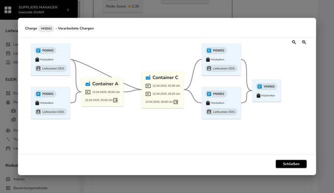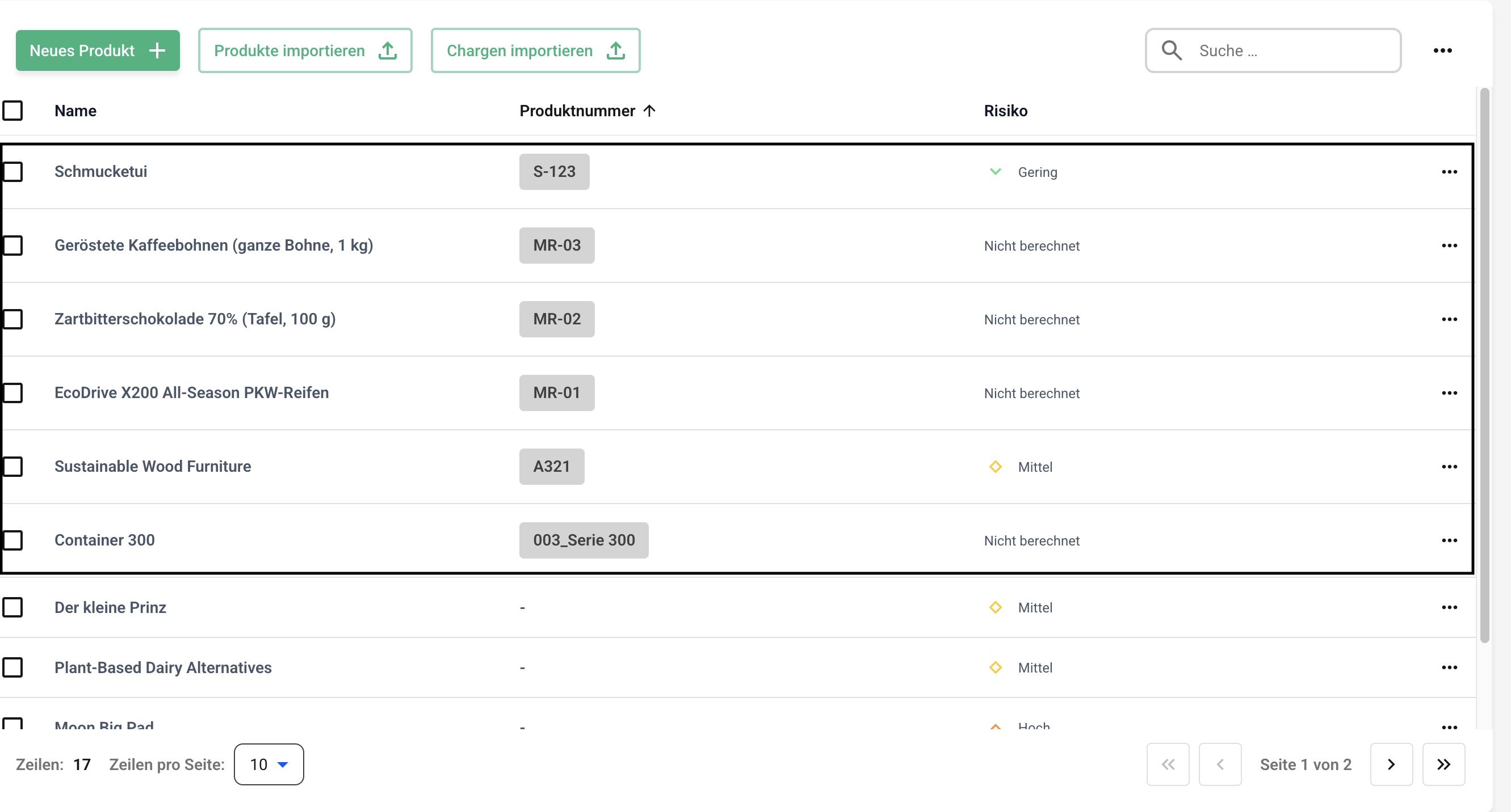 Klicken Sie anschließend auf ein Produkt Ihrer Wahl, um die Übersicht der verarbeiteten Chargen einzusehen.