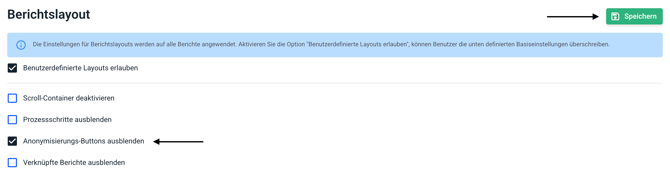 Für eine dauerhafte Deaktivierung setzen Sie den Haken bei Anonymisierungs-Buttons ausblenden. Standardmäßig ist der Anonymisierungs-Button aktiviert. Klicken Sie anschließend auf Speichern, um die Änderungen zu übernehmen.