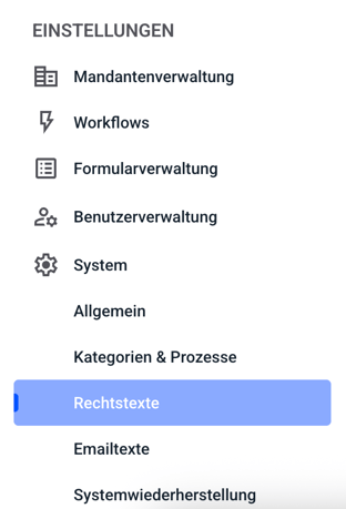 Klicken Sie auf System und dann auf die Rechtstexte.