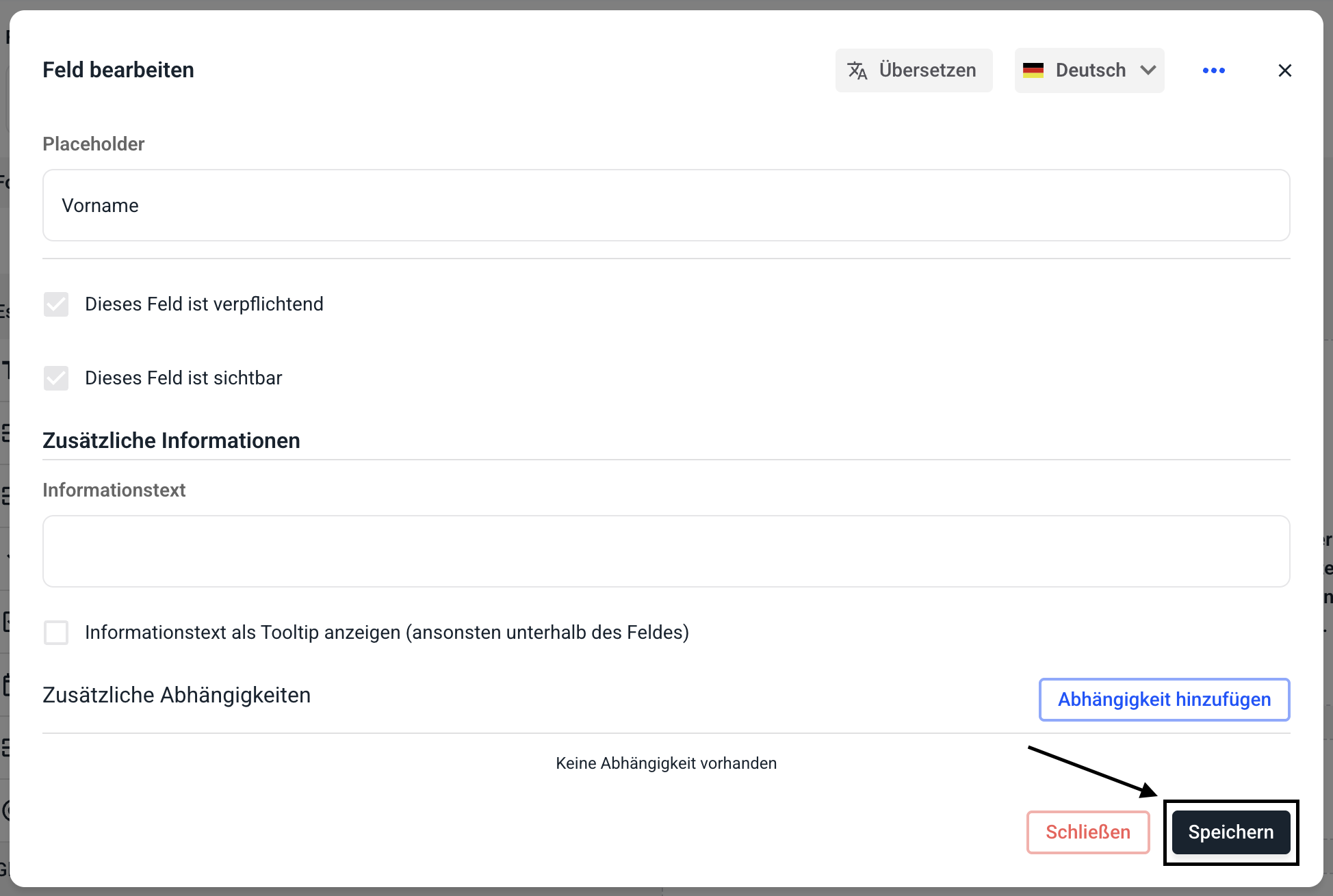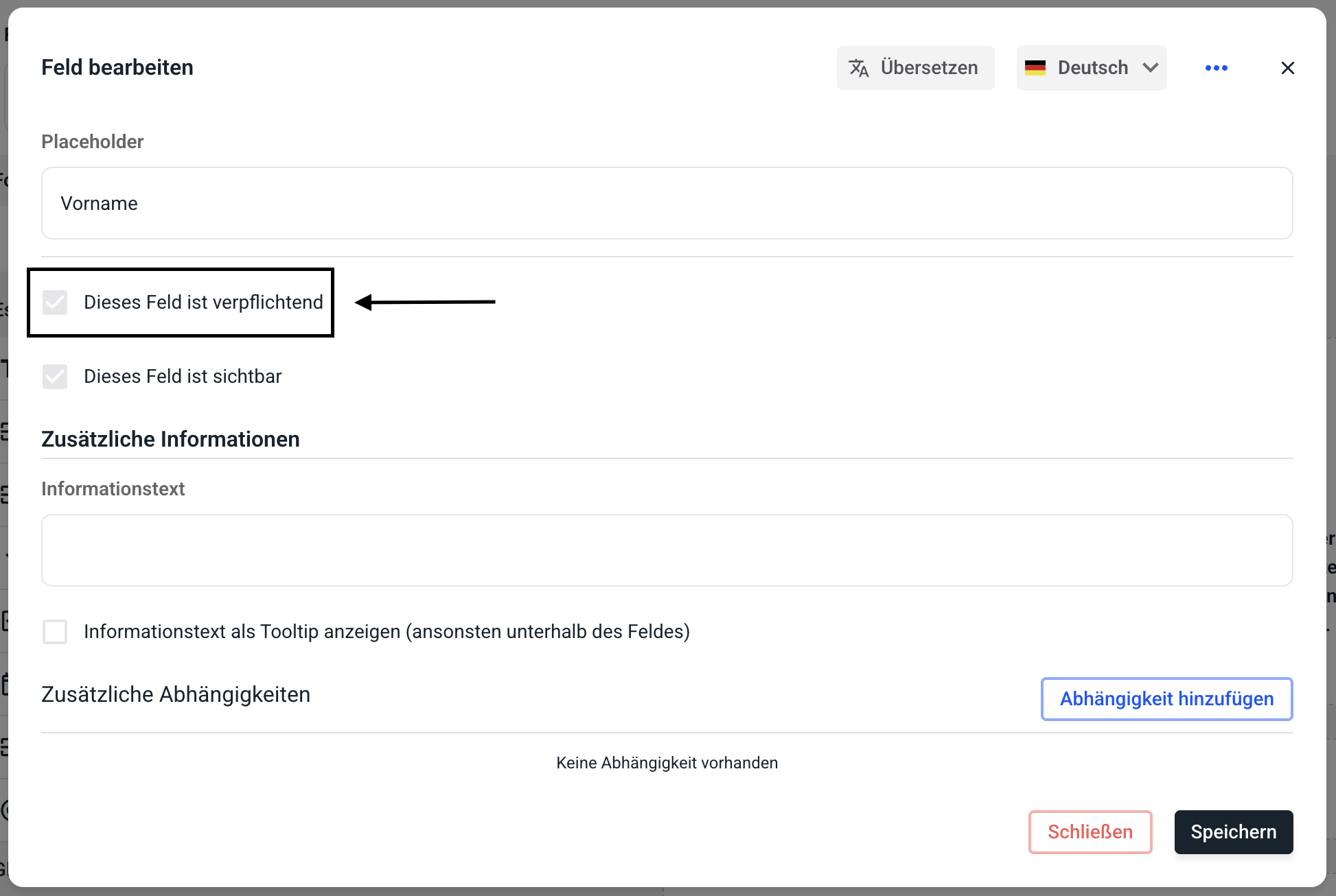 Wiederholen Sie diese Schritt für alle weiteren Kontaktdaten, die Sie verpflichtend machen wollen.