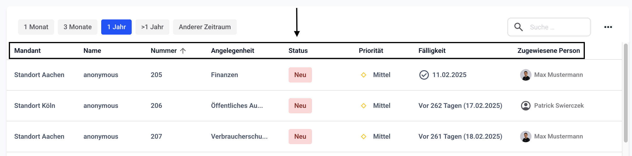Wenn Sie Spalten in der Übersicht hinzufügen oder entfernen möchten, dann können Sie dies einfach mit einem Klick auf “…” vornehmen:
