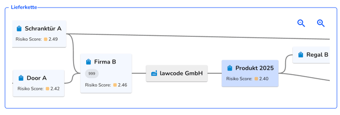 Wenn Sie innerhalb des Lieferkettenbildes auf einen Bestandteil der Lieferkette klicken, z.B. auf die "Firma B", werden Sie direkt zum passenden Datensatz weitergeleitet.