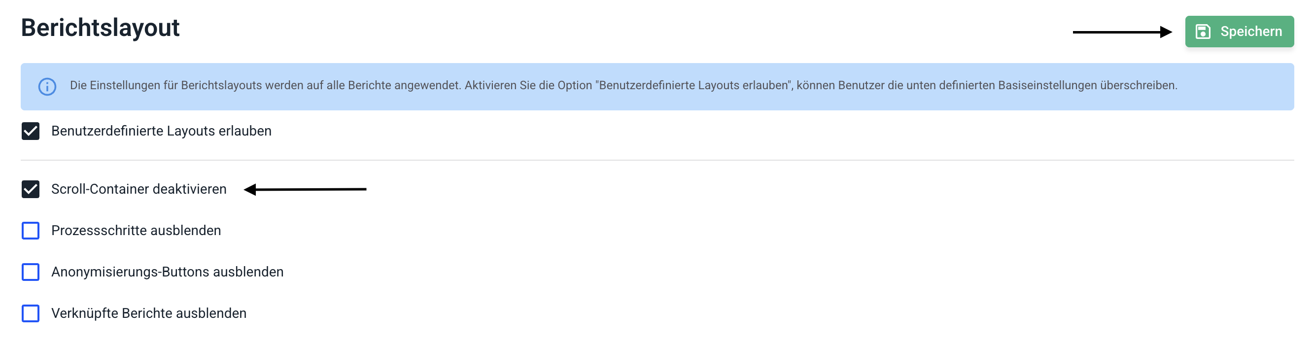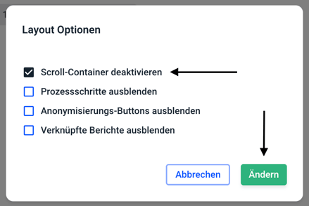 Wie kann ich die Scrollcontainer des Berichtslayouts aktivieren / deaktivieren?