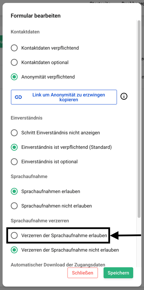 Klicken Sie auf Verzerren der Sprachaufnahme erlauben