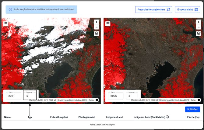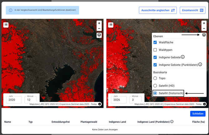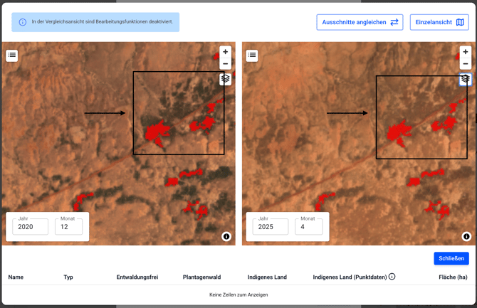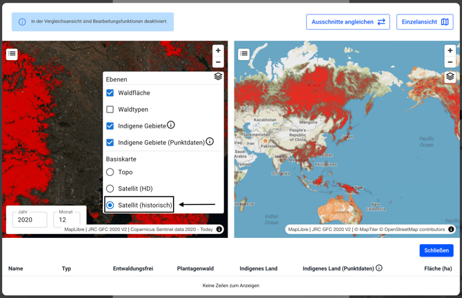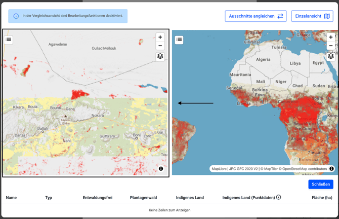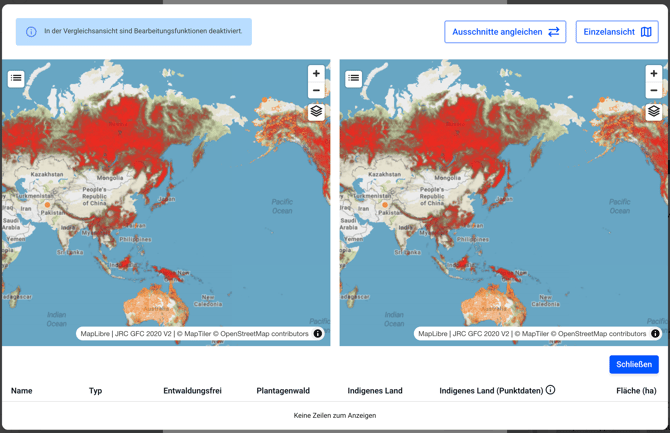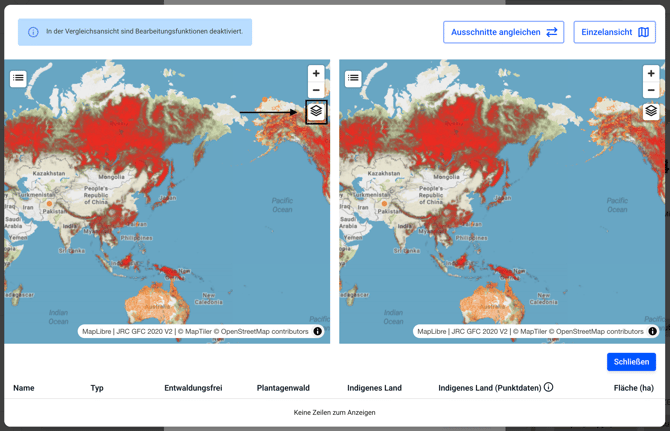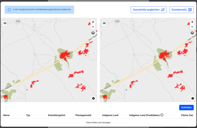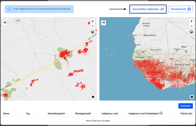 Klicken Sie jetzt auf Ausschnitte angleichen, um die Kartendaten für beide Seiten identisch zu zeigen.