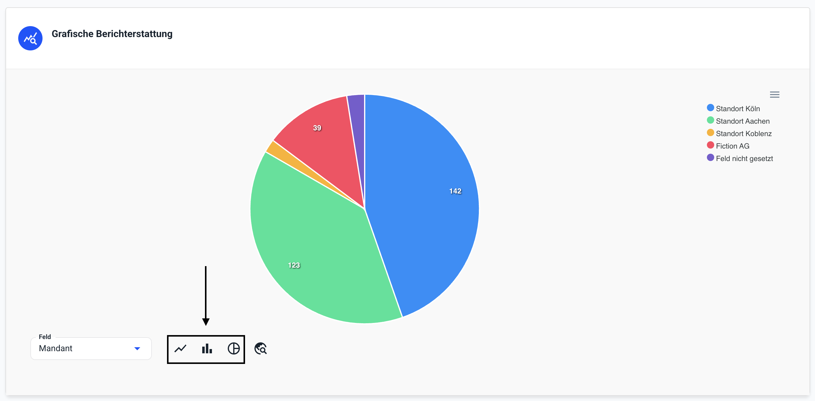 Um ein anderes Diagramm-Format auszuwählen, klicken Sie zunächst auf den Reiter Grafische Auswertungen.