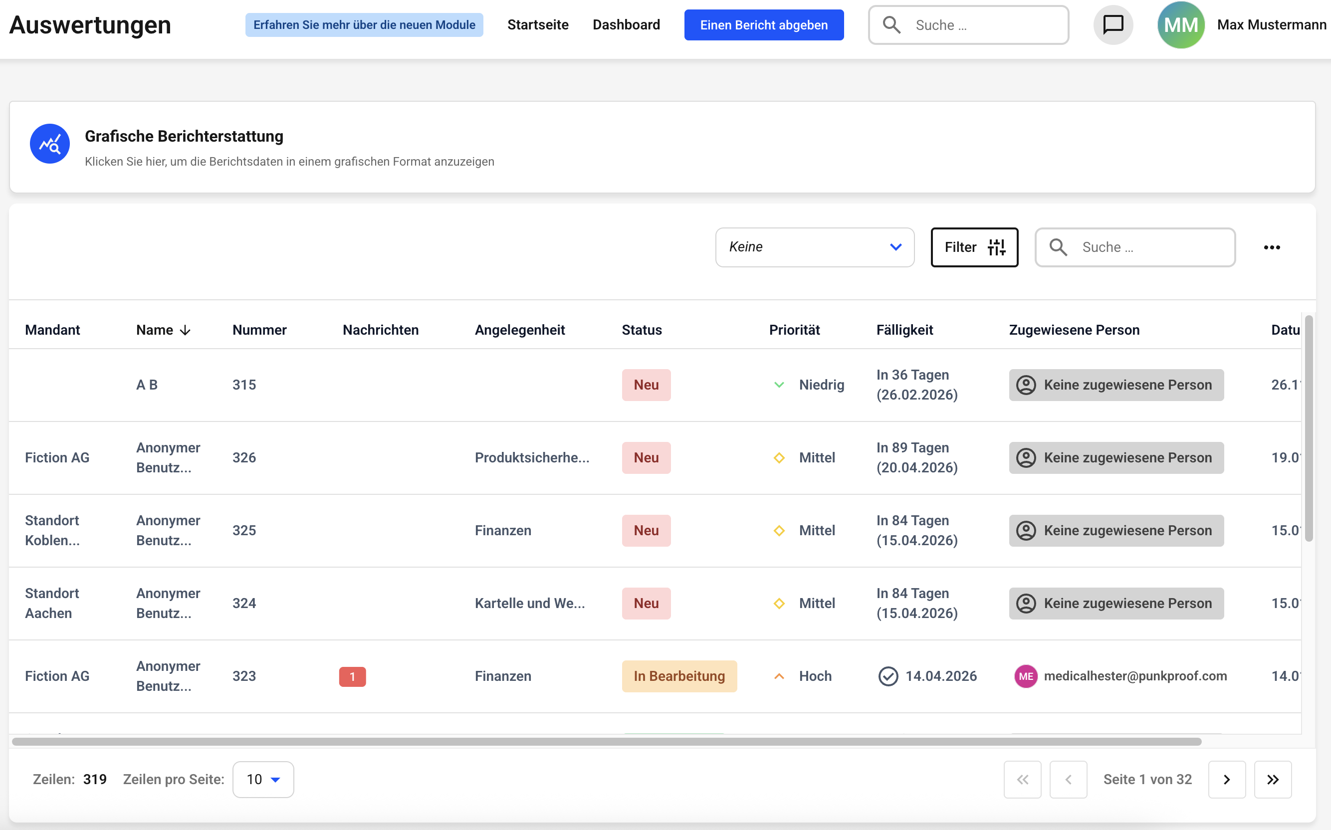 Klicken Sie jetzt auf die Grafische Berichtserstattung.