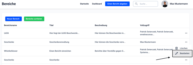 In diesem Kapitel wird erklärt, wie ein Bereich bearbeitet werden kann.