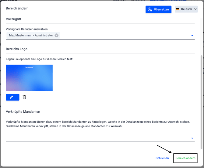 Nach den Änderungen der gewünschten Aspekte klicken Sie auf Bereich ändern.