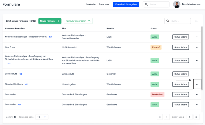 Formulare können als JSON Datei exportiert werden. Navigieren Sie in dafür in die Formularverwaltung.