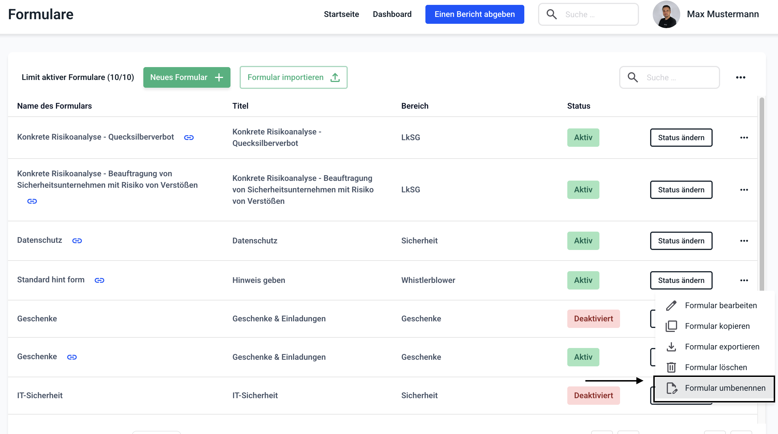 Klicken Sie bei dem Formular Ihrer Wahl auf die drei Punkte auf der rechten Seite.