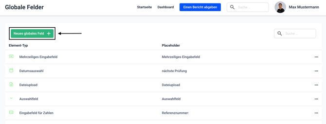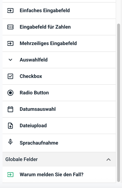 Das globale Feld können Sie in der Felderauswahl finden. Sie können es wie alle weiteren Felder mit der Maus per Drag and Drop in das Formular ziehen.