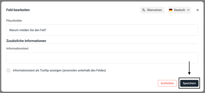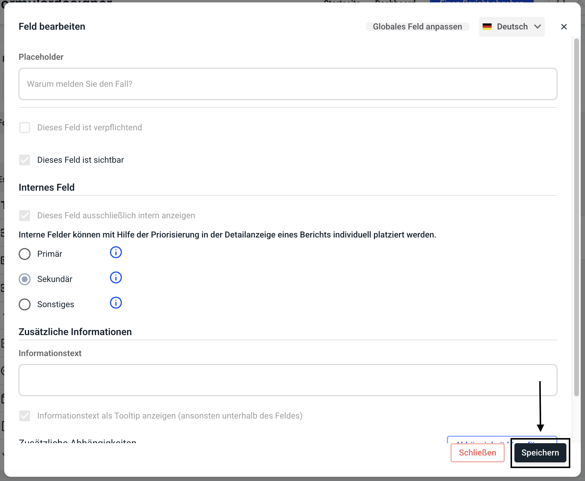 Füllen Sie die Informationen, die das Feld beinhalten soll, aus. Klicken Sie dann auf Speichern.