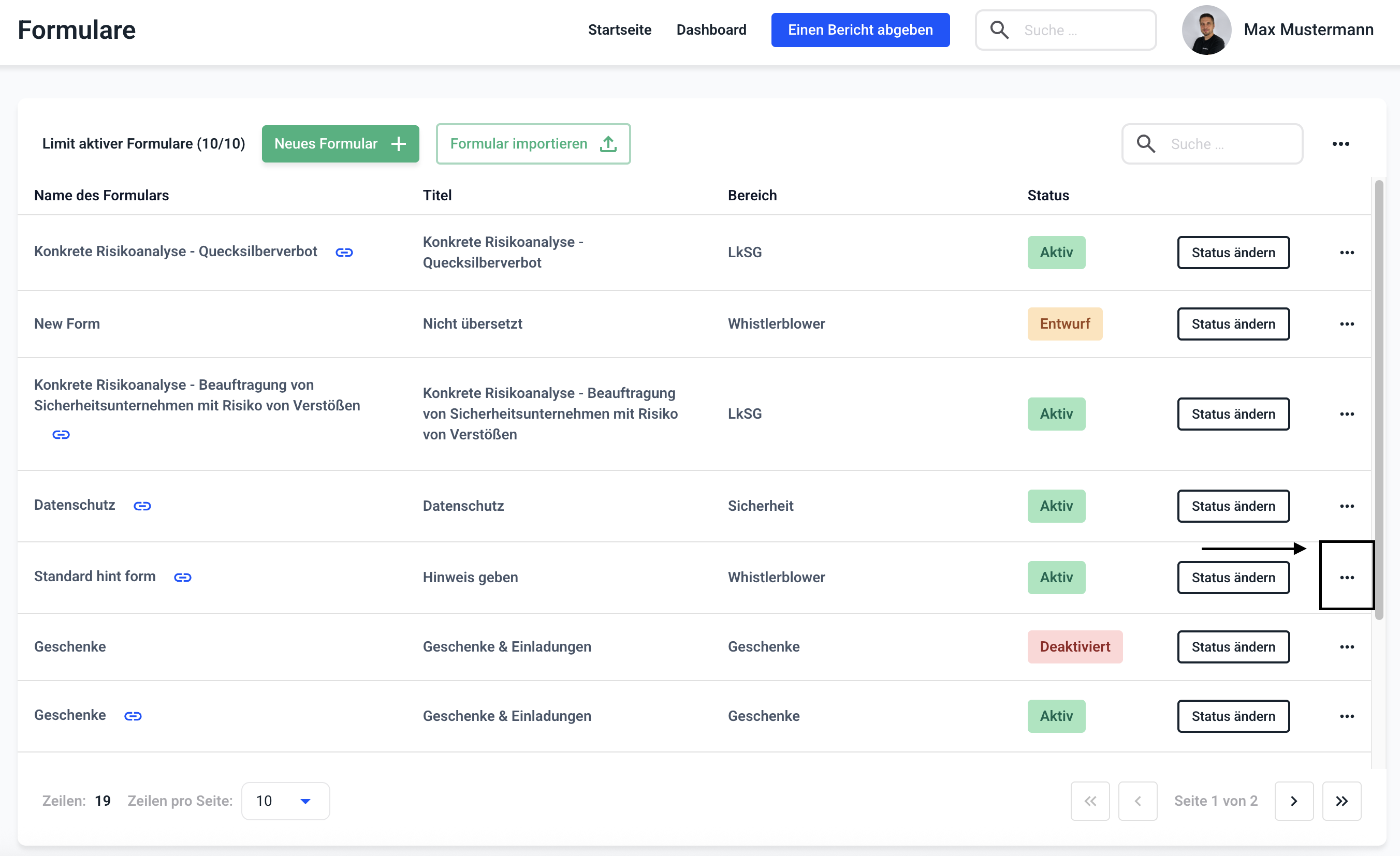 Klicken Sie jetzt bei dem Formular Ihrer Wahl auf die drei Punkte auf der rechten Seite.