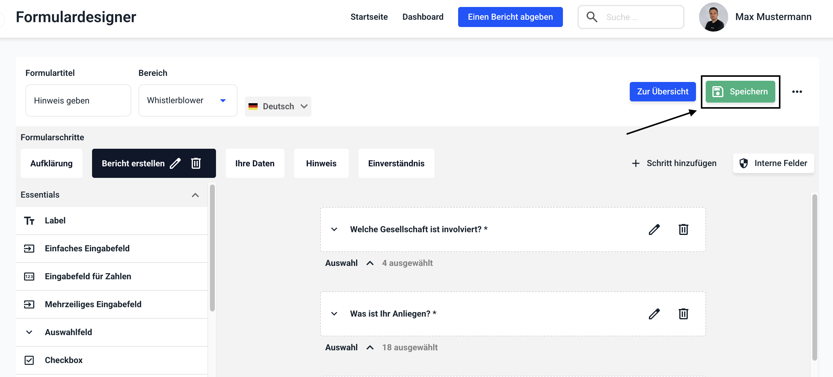 Klicken Sie auf Speichern, um die Änderungen im gesamten Formular zu übernehmen.