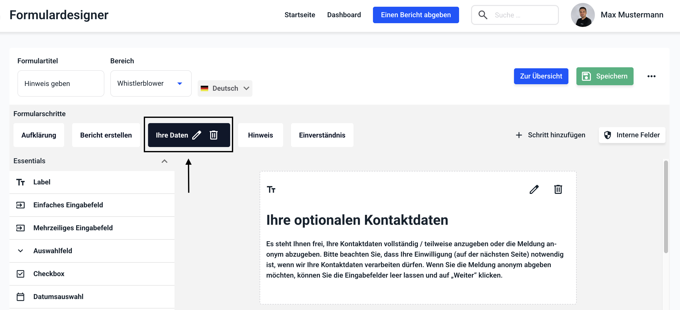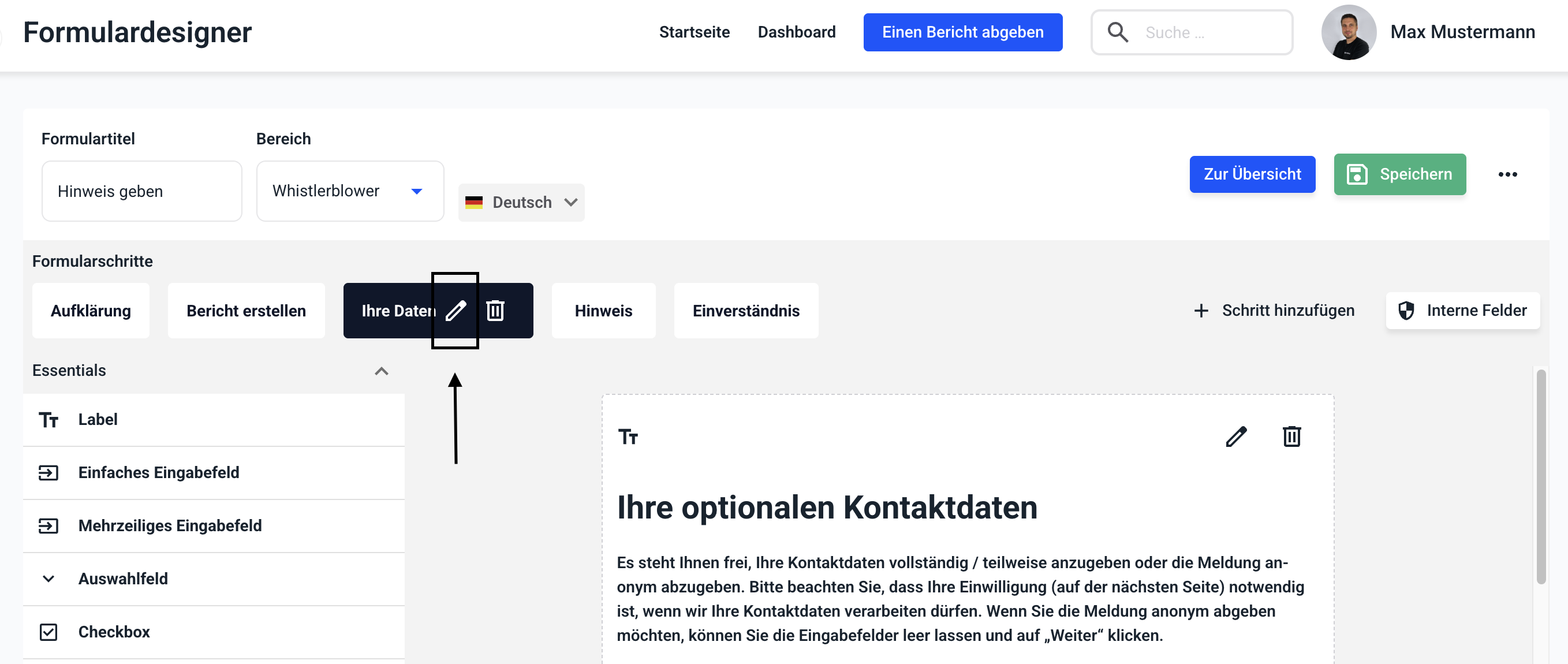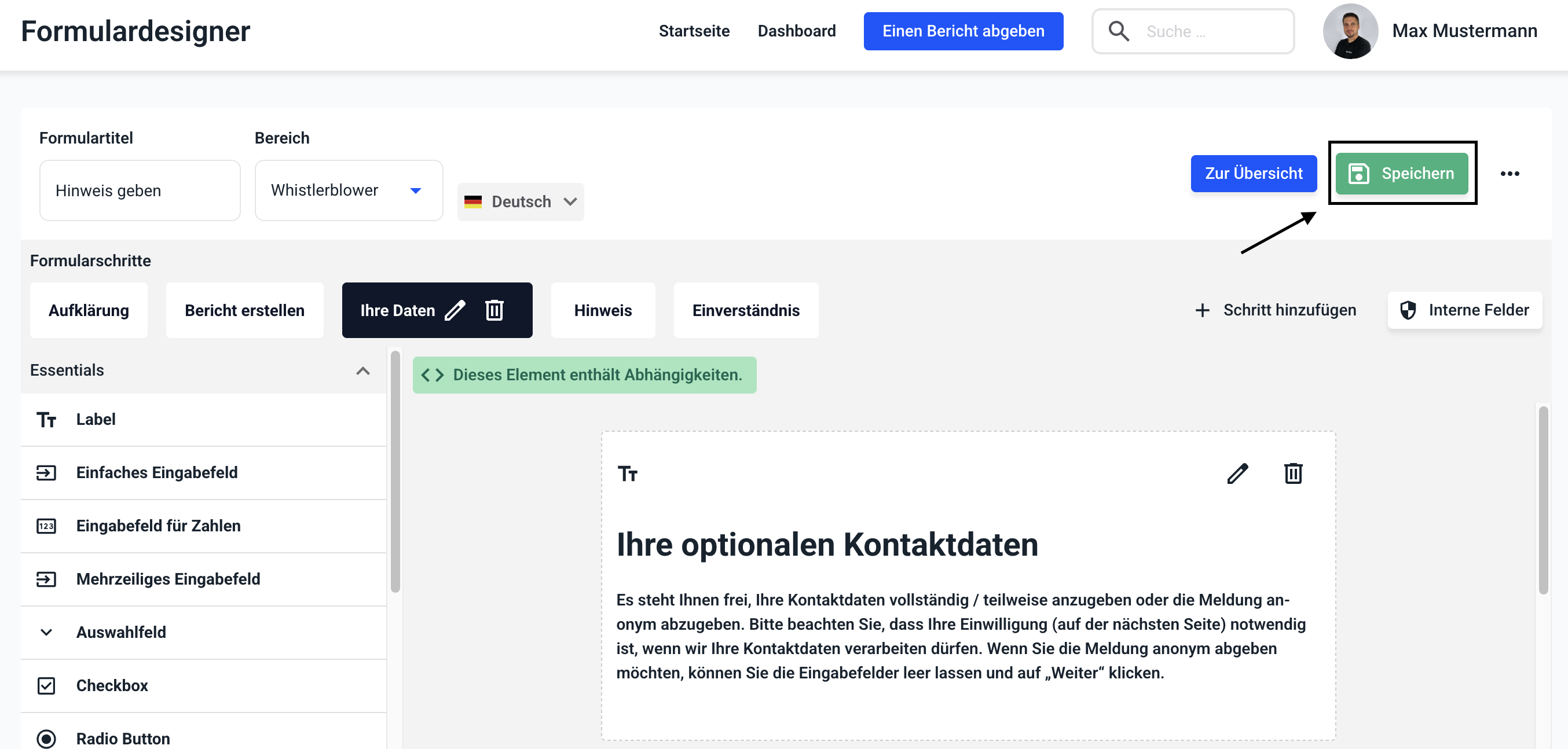 Klicken Sie auf Speichern, um die Änderungen im gesamten Formular zu übernehmen.