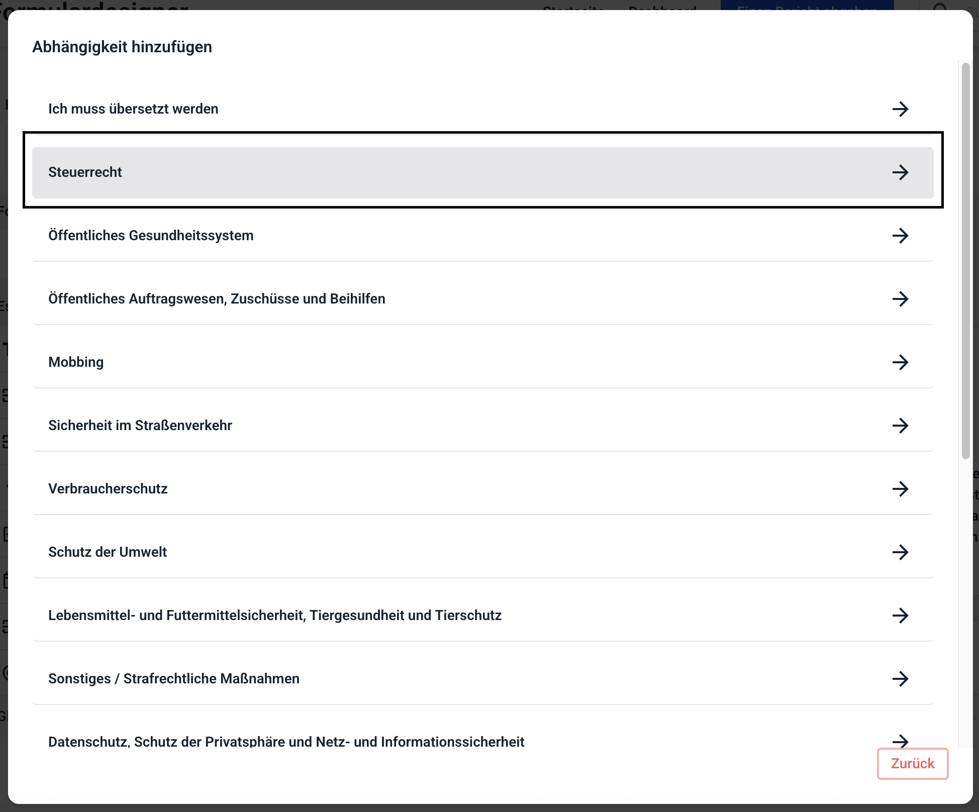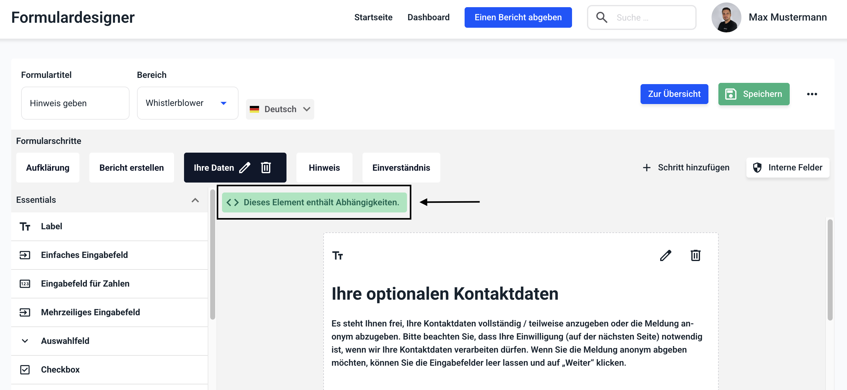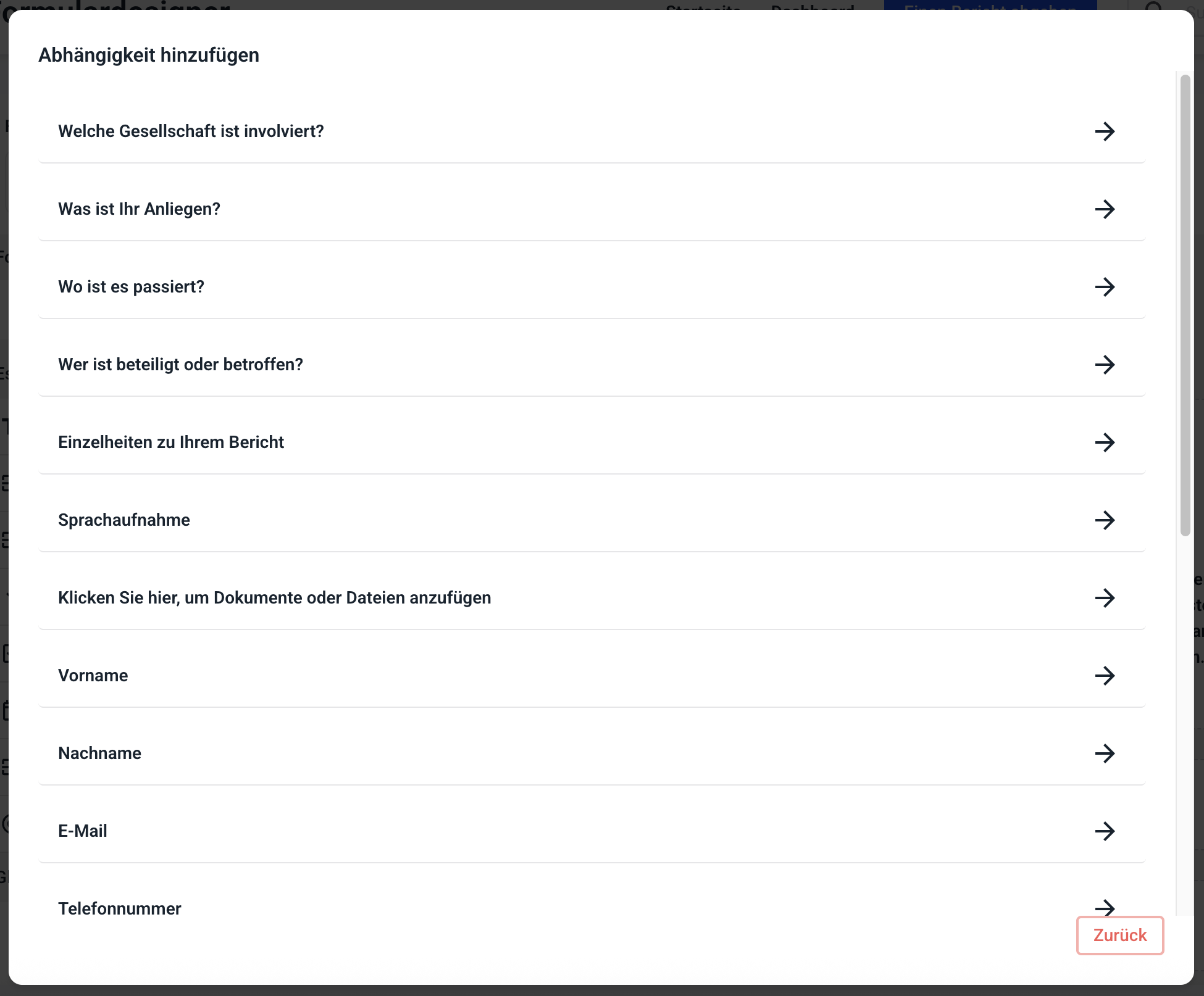 Abhängigkeiten in Schritten ermöglichen Ihnen, jedem gewünschten Schritt in Ihrem Formular eine Abhängigkeit zu einem anderen Feld hinzuzufügen.