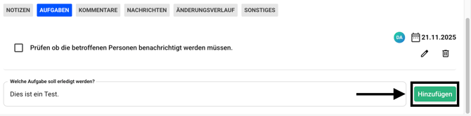 Anschließend können Sie eine Aufgaben anlegen und mit “Hinzufügen“ bestätigen.