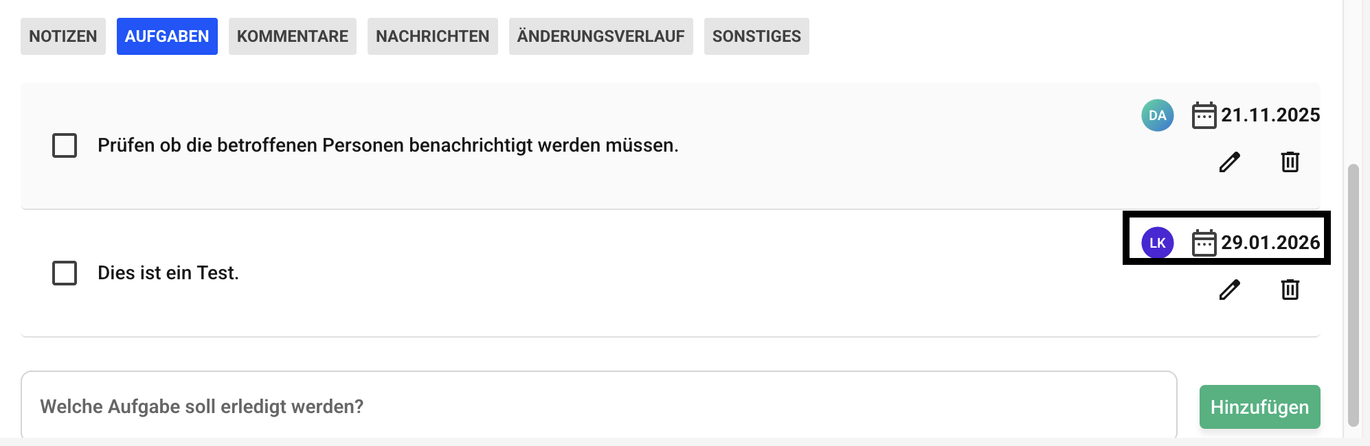 Anschließend sollten Ihre Änderungen in der Übersicht der Aufgaben ersichtlich sein.