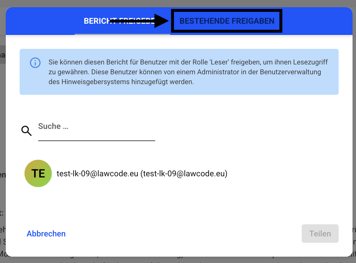 Sie möchten die Freigabe eines Benutzer für einzelnen Bericht zurückziehen, dann klicken Sie einfach auf “Bericht freigeben“.