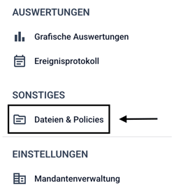 Um eine Datei in dem Bereich Dateien & Policies hochzuladen, klicken Sie zunächst auf Dateien & Policies.