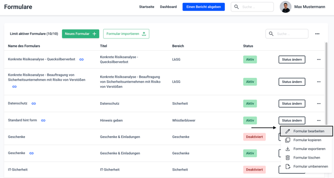 Klicken Sie jetzt bei dem Formular Ihrer Wahl auf die drei Punkte auf der rechten Seite.