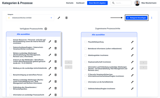 Klicken Sie jetzt auf Kategorien und Prozesse.