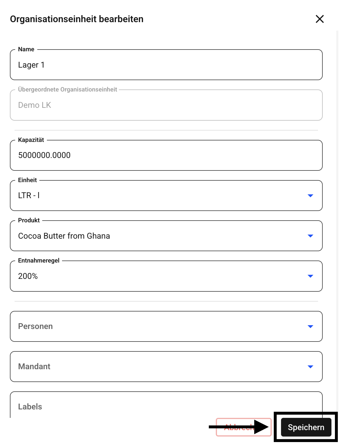 Um eine Lagereinheit umzubenennen, klicken Sie zunächst auf das Organisationsmanagement.