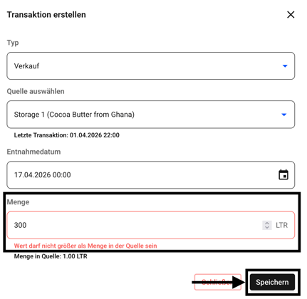 Füllen Sie die Angaben aus und drücken Sie auf Speichern. Sie werden von dem Track and Traces Modul darauf hingewiesen, wenn Angaben nicht korrekt sind, oder berichtigt werden müssen.