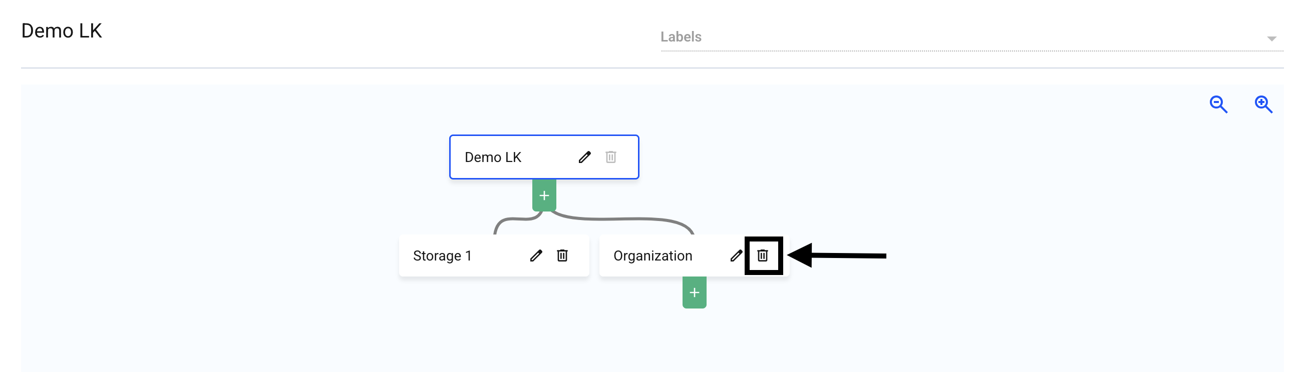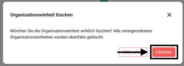 Klicken Sie jetzt auf das Papierkorbsymbol der Organisationseinheit, die Sie löschen möchten.