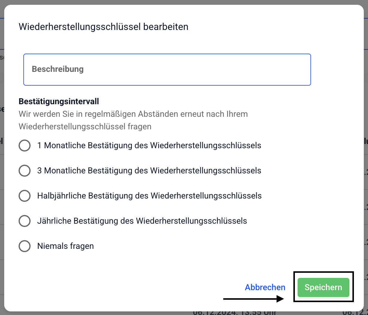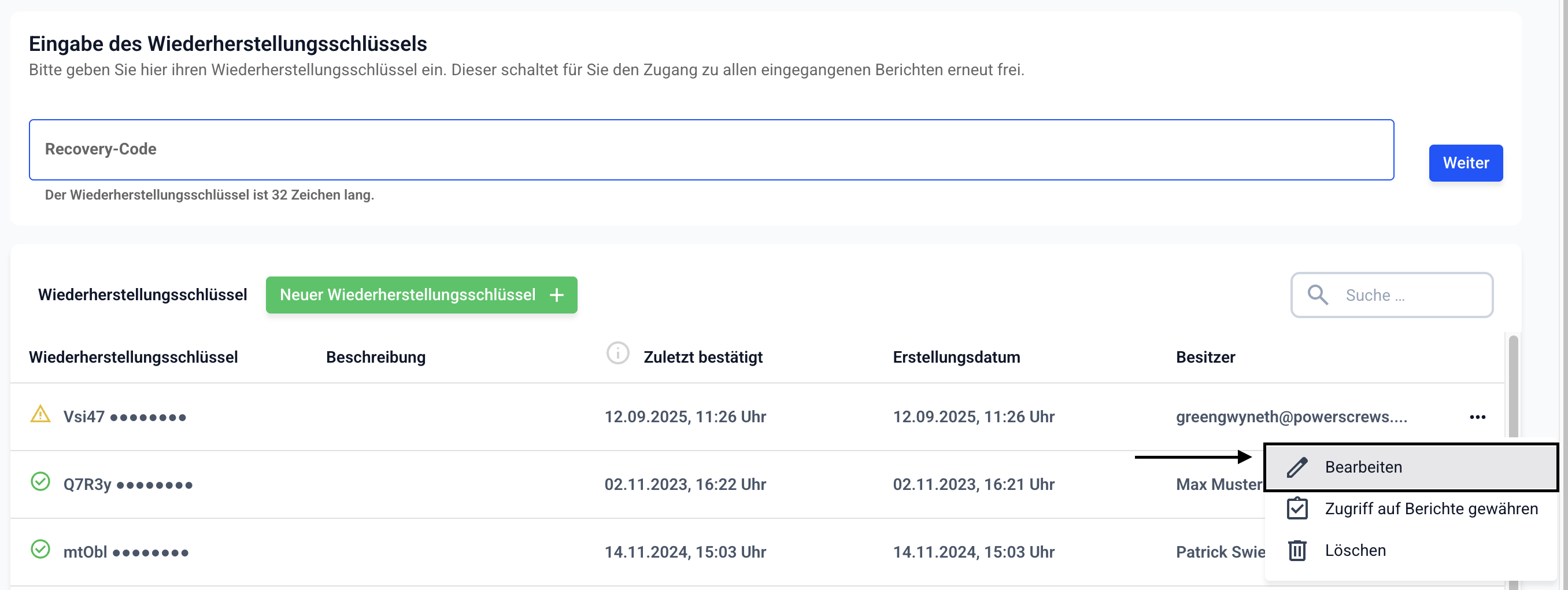Wie kann ich einen Wiederherstellungsschlüssel bearbeiten?