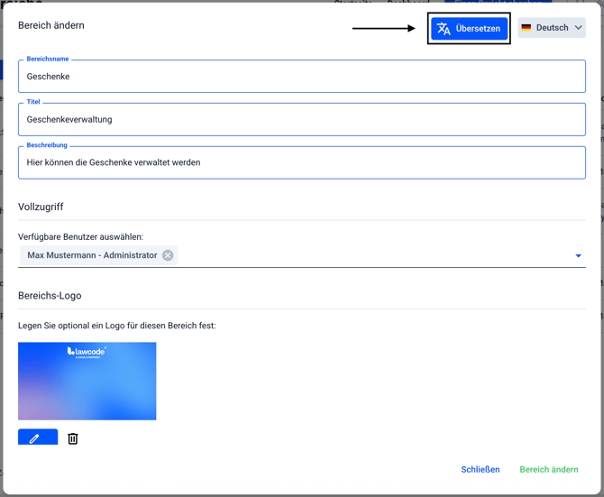 Bereiche können übersetzt werden. Gehen Sie dafür in die Formularverwaltung.