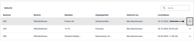 Um einen Hinweis wieder herstellen zu können, klicken Sie auf Gelöscht.