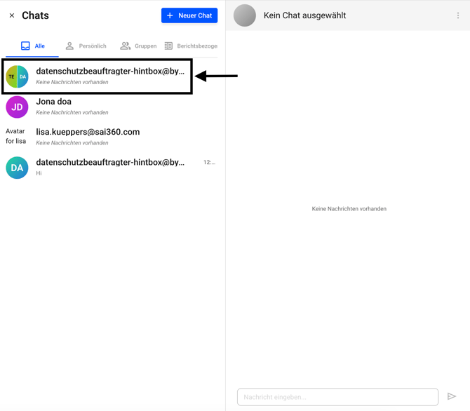 Wählen Sie den entsprechenden Chat aus der Auswahl.