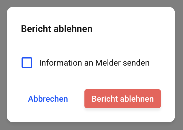 Anschließend müssen auf “Bericht ablehnen“ klicken um den Hinweis final abzulehnen.