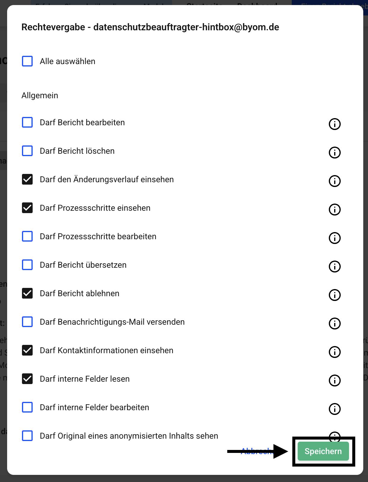 Sofern die Rechte angepasst wurden, klicken Sie auf Speichern.