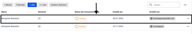 Sie können den Antrag auf Anonymisierung ablehnen oder genehmigen. In dem Fall klicken Sie auf Anonymisierung annehmen.
