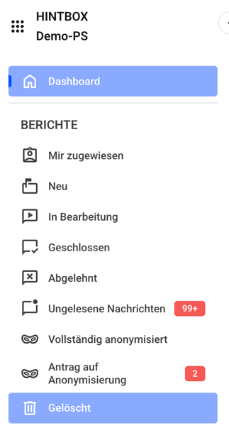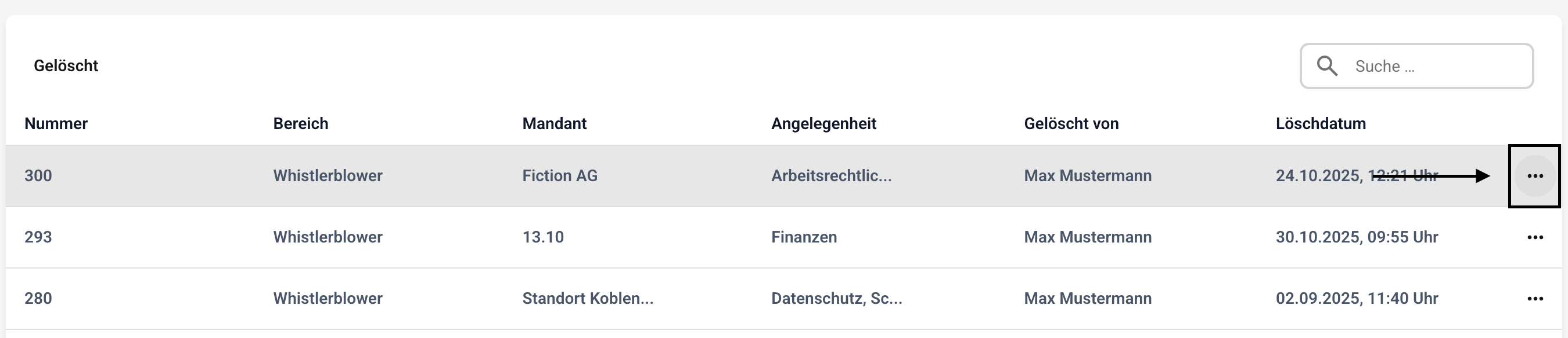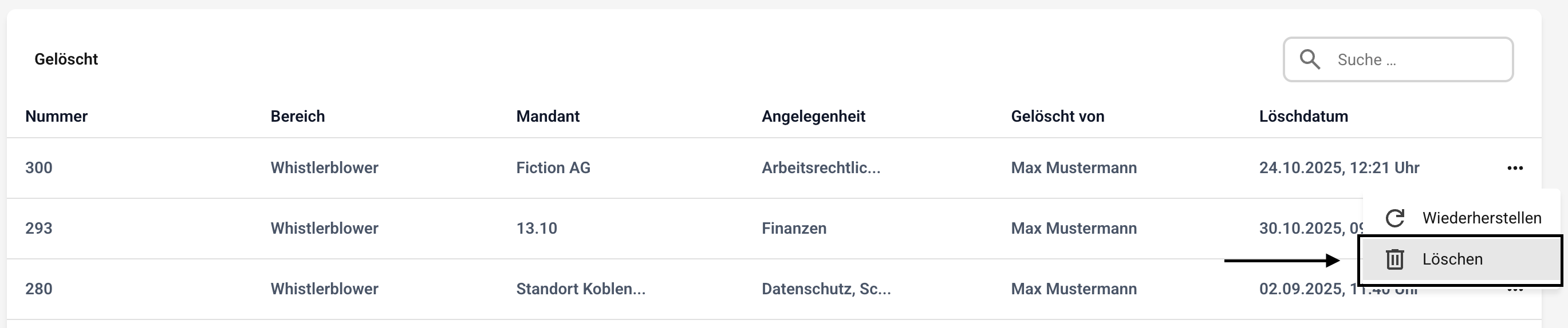 Um einen Hinweis final zu löschen, klicken Sie auf Gelöscht.