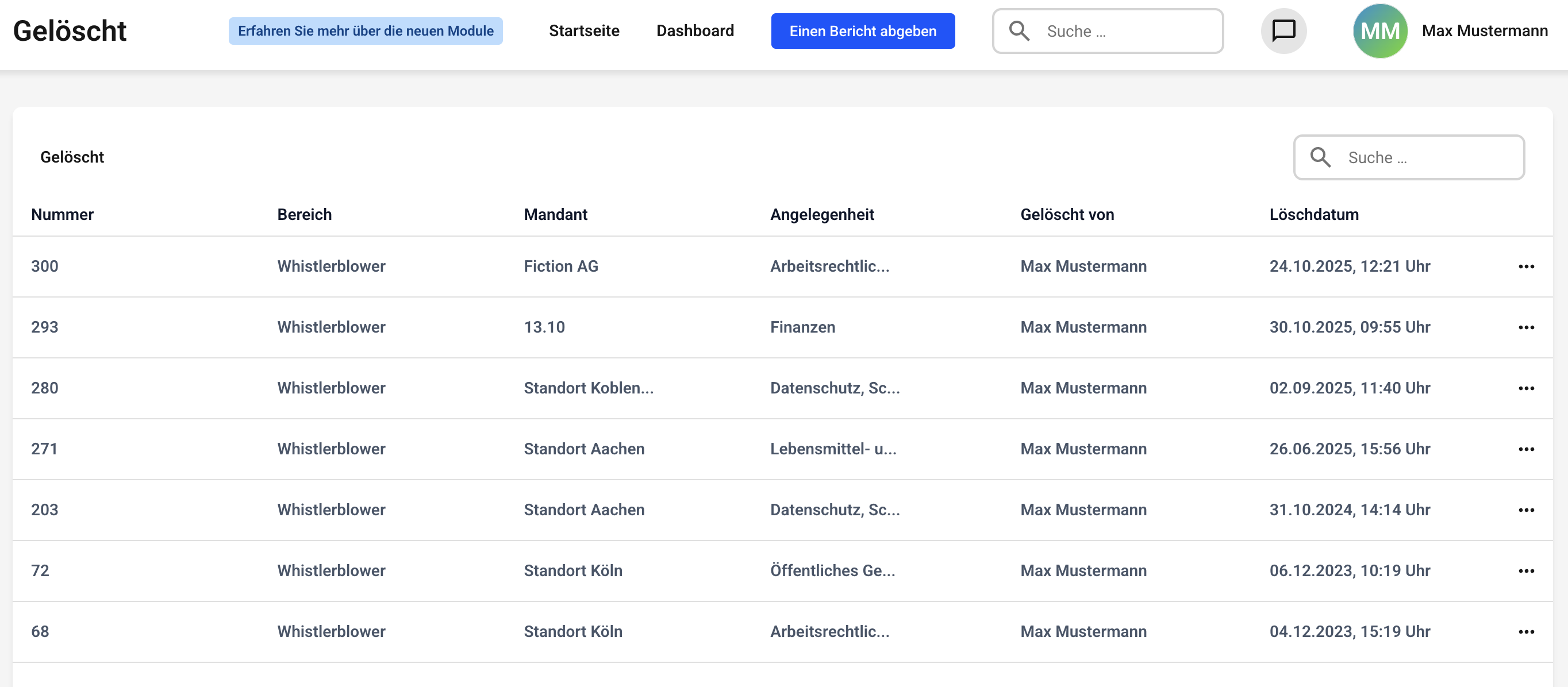 Besonders wichtig ist die Spalte Gelöscht von, da Sie hier erkennen können, wer den Löschantrag gestellt hat.
