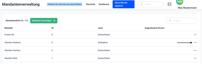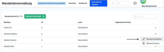 Klicken Sie jetzt auf die drei Punkte des Mandanten, den Sie bearbeiten möchten.