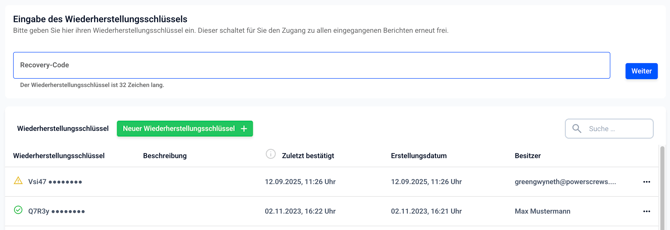 Wie kann ich einen neuen Wiederherstellungsschlüssel anlegen?