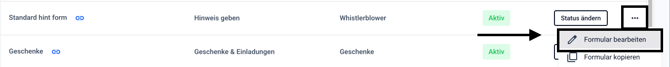 Klicken Sie bei dem entsprechenden Formular auf die drei Punkte und anschließend auf Formular bearbeiten.
