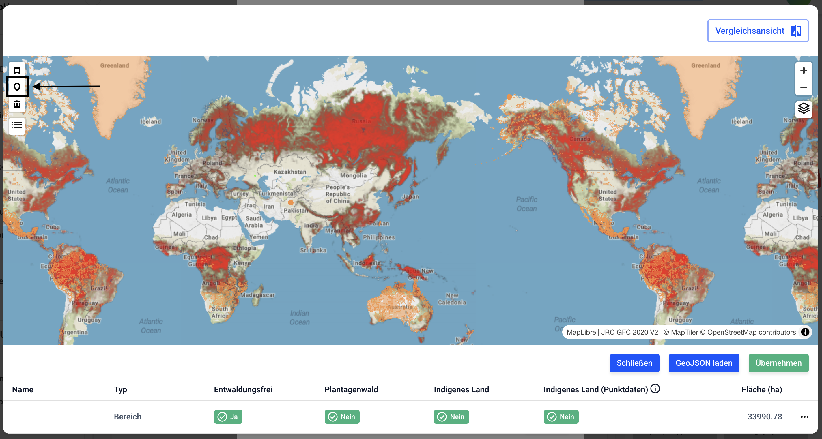 Sie haben jetzt die Möglichkeit einen Marker auf der Karte per Linksklick der Maus zu setzen.