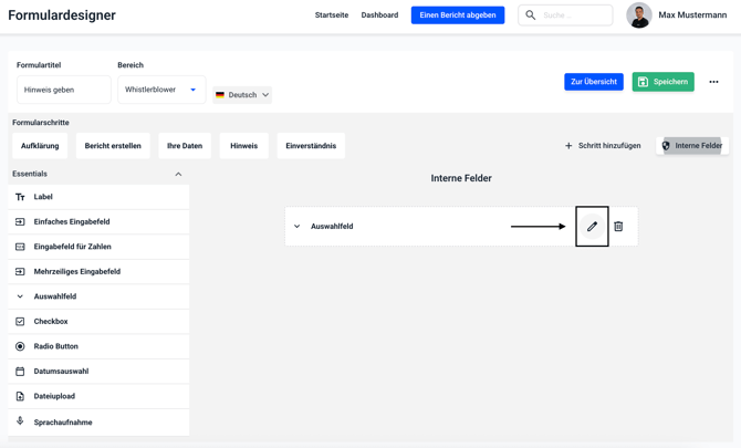 Klicken Sie bei dem ausgewählten Feld auf den Bearbeitungsstift.