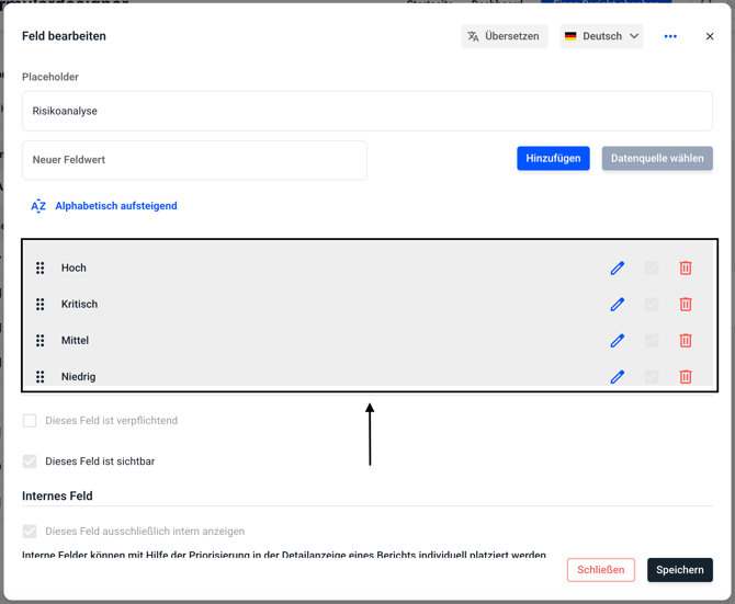 Bearbeiten Sie die das Feld entsprechend und klicken Sie dann auf Speichern.