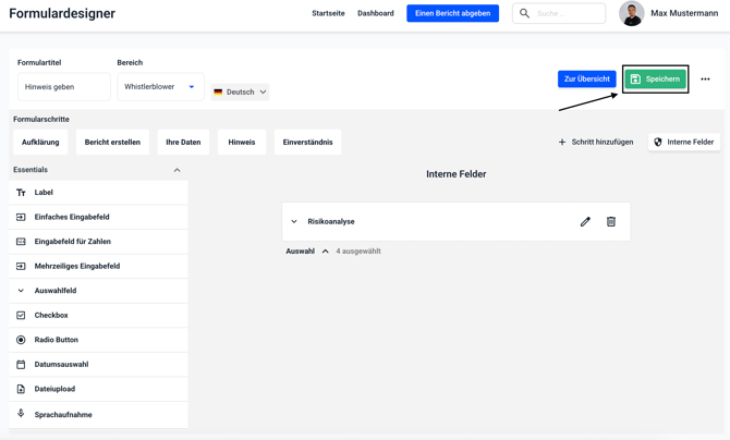 Speichern Sie das Formular.