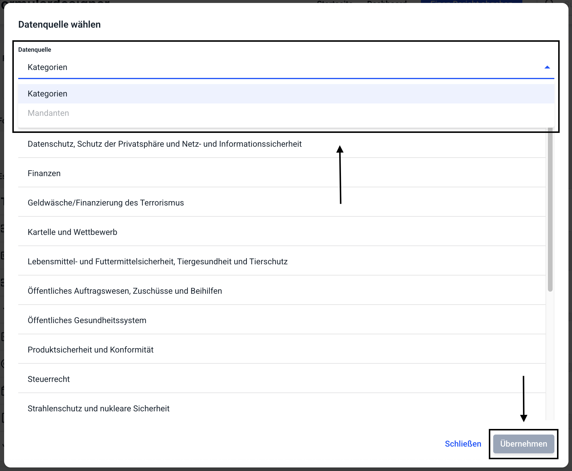 Wählen Sie jetzt die Kategorien aus und klicken Sie auf Übernehmen.