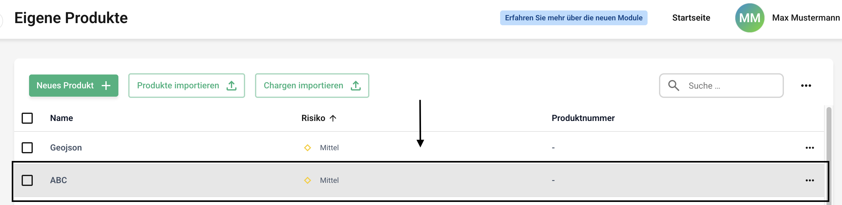 Klicken Sie jetzt auf die Zeile des gewünschten Produktes, dass Sie umbenennen möchten.