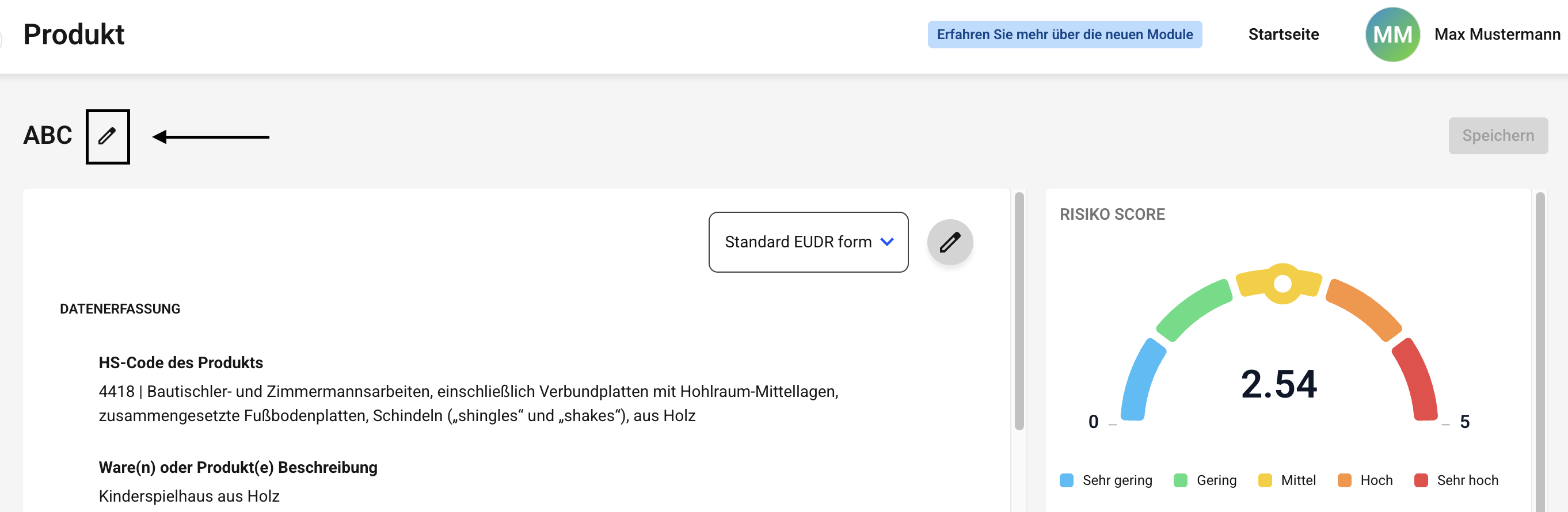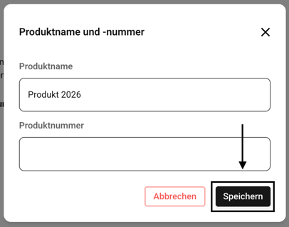 Geben Sie jetzt in dem Feld Produktname Ihren neuen Wunschnamen des Produktes ein. Bestätigen Sie die Änderung mit dem Speichern-Button.