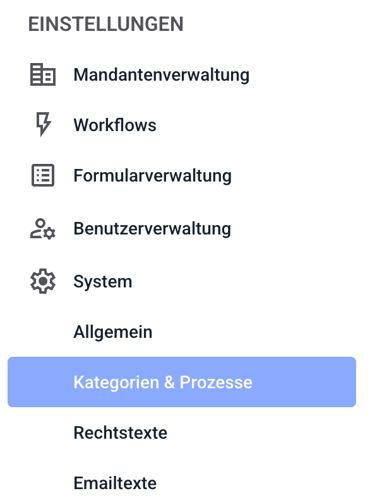 Um einer Kategorie einen oder mehrere Prozessschritte zuzuweisen, klicken Sie bei den Einstellungen auf System.